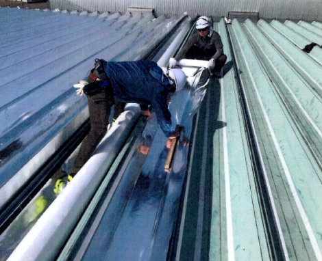 シートを屋根に直接貼り付ける工法のため、工場の稼働を止めることもありません。さらにシート折板屋根の接合部(ジョイント部分)をシートで覆うことができるので、雨漏り対策にも効果を発揮します。
