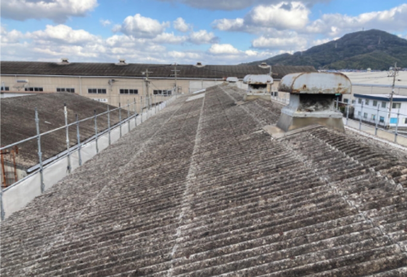古くなったスレートはアスベストを含むため、取り外す場合膨大なコストと手間が掛かるため取り外すことが困難です。