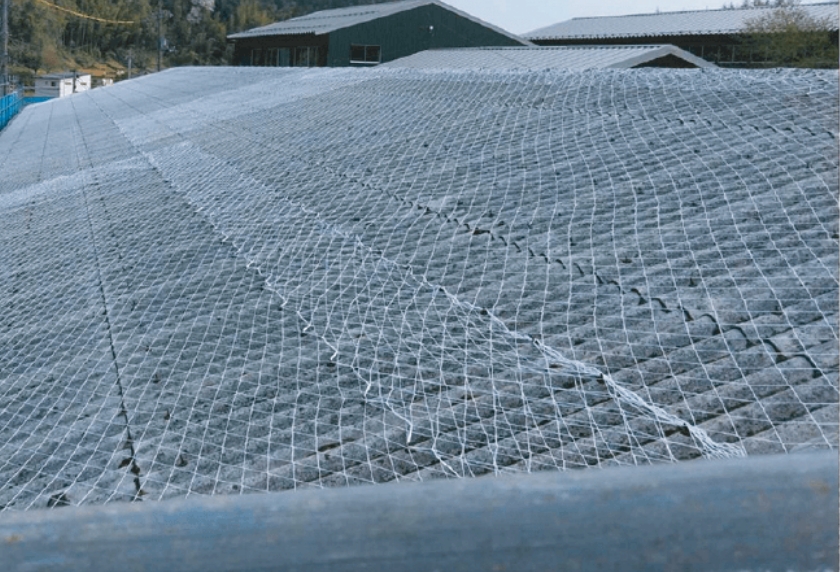 踏む抜けによる落下防止として安全ネットを屋根の上に敷き込みます。
