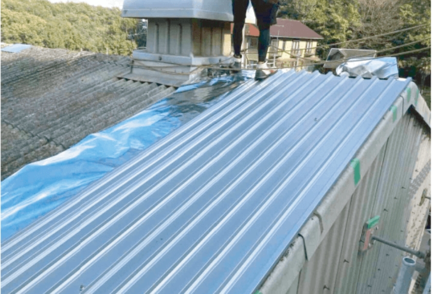 屋根の上に新たにガルバリュウム鋼板を被せ、古くなった屋根と