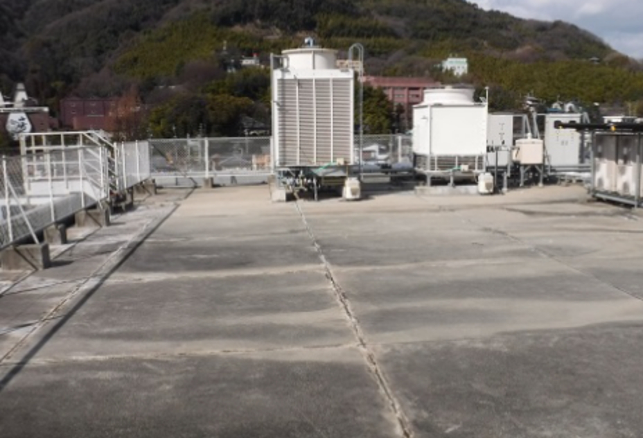 サーモバリアを屋上の上に接着し取付けるトップ工法を行うことで太陽の熱を反射し、屋上のコンクリートの温度上昇を抑えます。