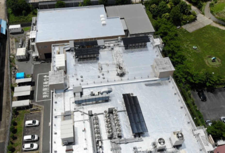 工場・学校・体育館などの屋上に貼ることで太陽光線を反射し建物の温度上昇を抑える効果があります。