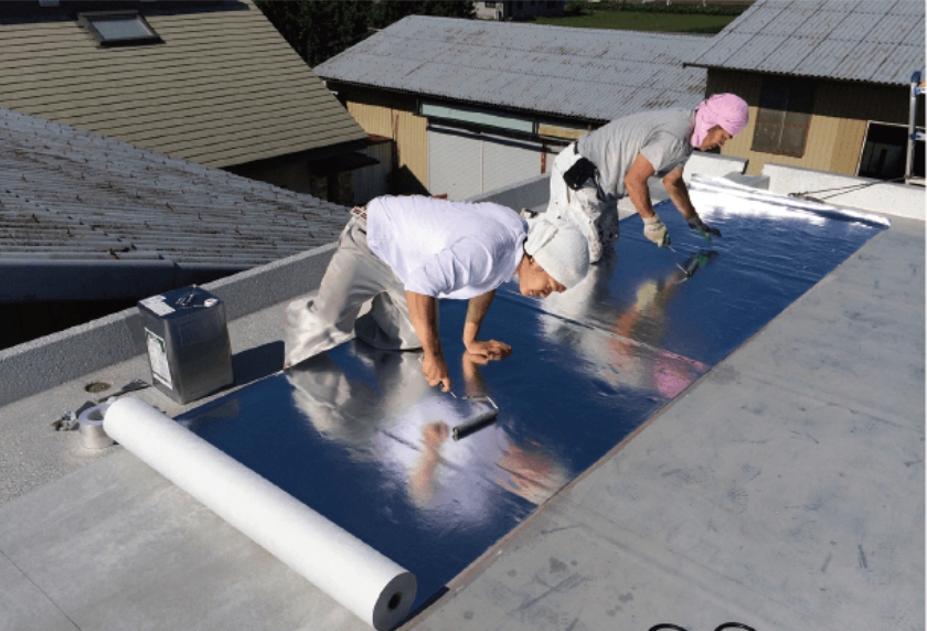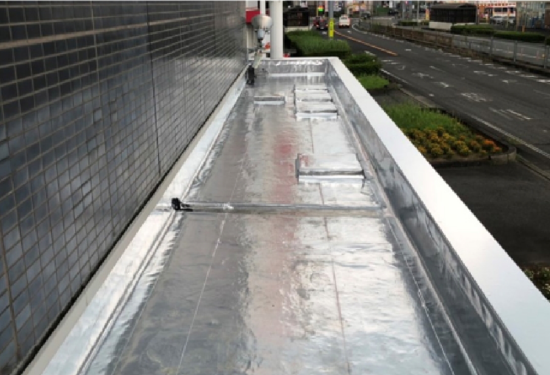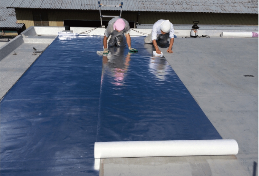厚さ0.2mmのシートをフラットな屋根上に直接貼るタイプの遮熱シート。