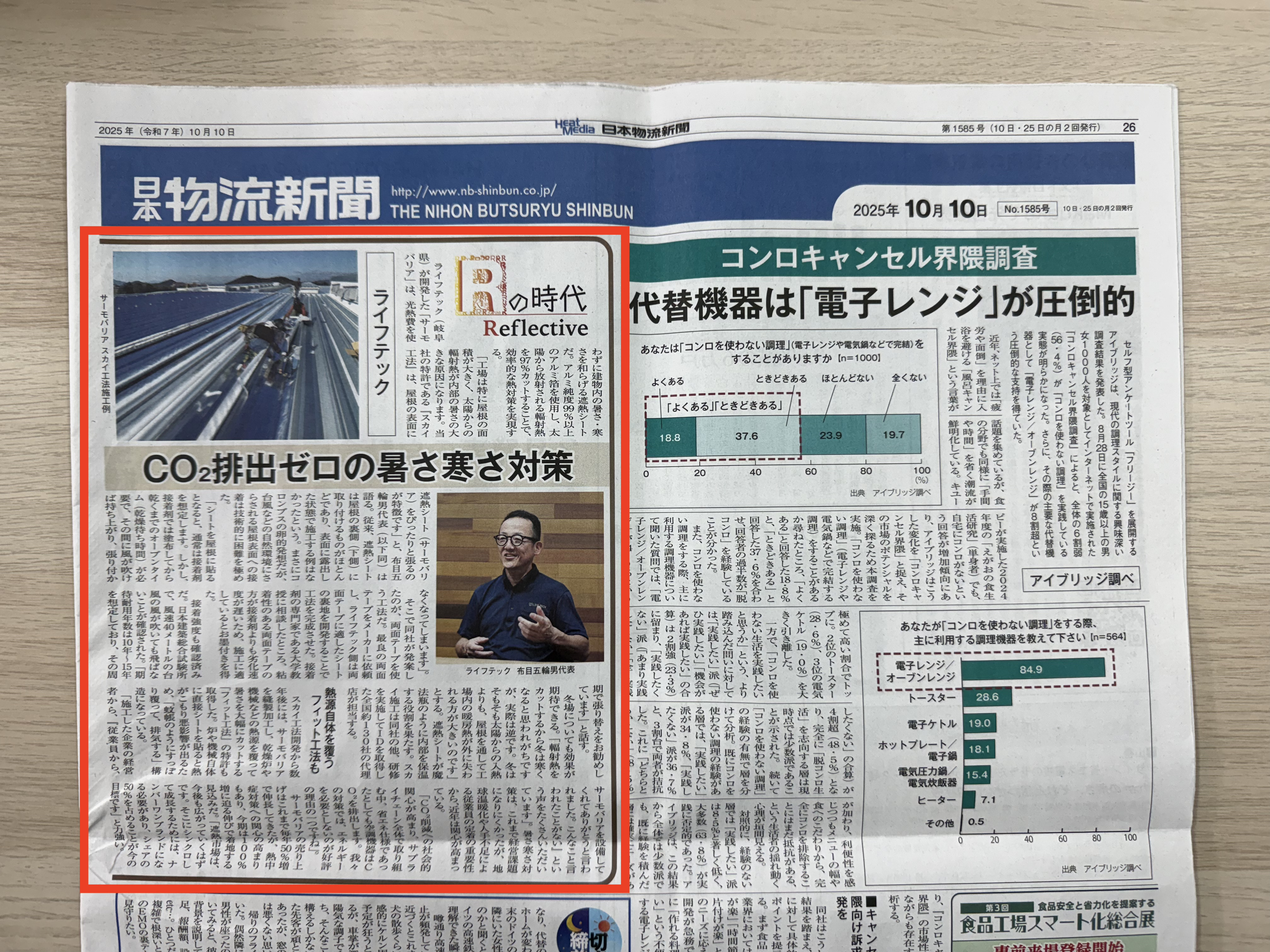 この度、2025年10月10日発行の「日本物流新聞」におきまして、弊社の遮熱材「サーモバリア」が紹介されました。