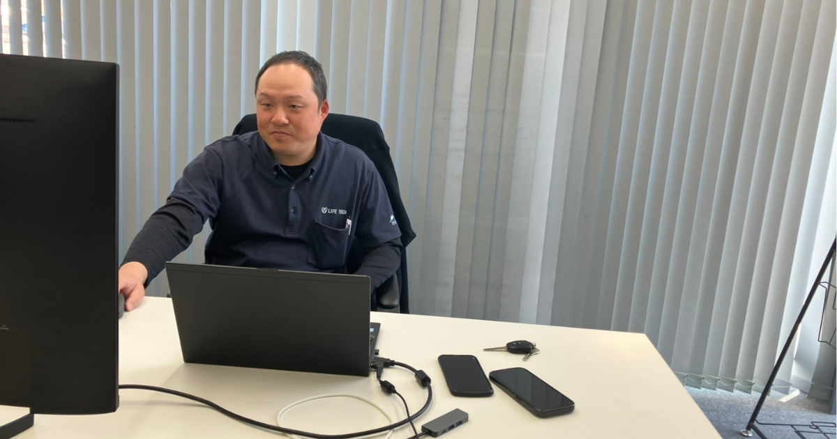製造業で働いていた頃、夏の工場で熱中症になった経験を持つ船曳さん。「お客様としっかりコミュニケーションを取りたい」という思いから複合機の営業を経て、ライフテックへ転職しました。入社から約1年が経った現在は、先輩営業のフォローや代理店対応を担当しています。
