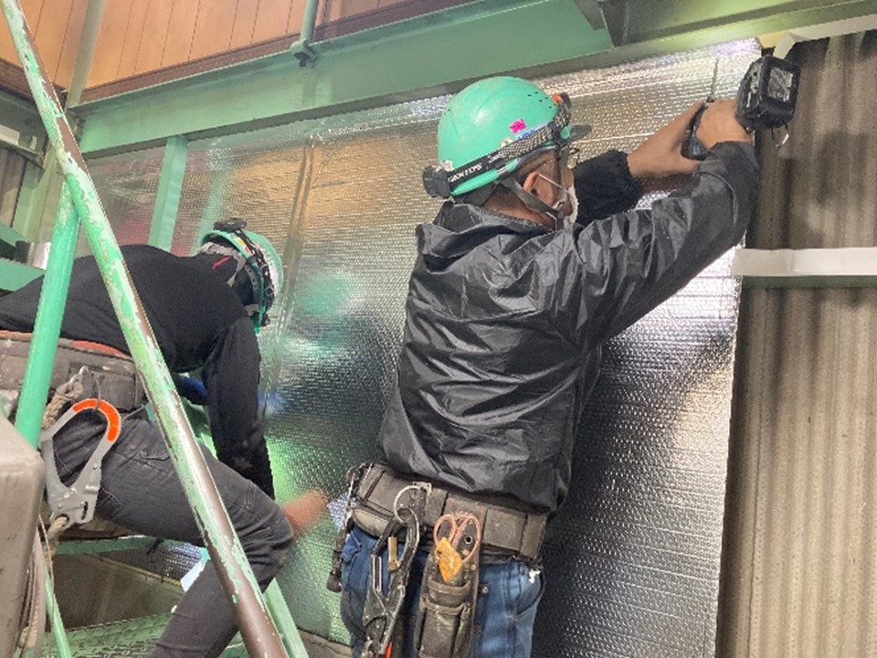 建物の使用用途:金属加工工場 施工現場:大阪府豊中市 施工面積:170㎡ 施工商品:スレート屋根屋内工法 使用商品:サーモバリアS 施工時期:2023年1月 施工日数:3日間 【導入の理由】 夏場の暑さ対策に屋根下と東・南壁面にご採用頂きました。 |