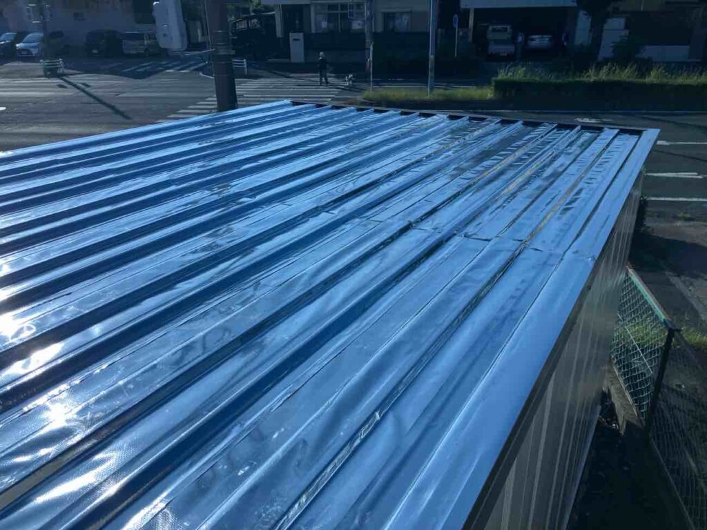 スカイ工法代理店が自社倉庫に実験用として施工