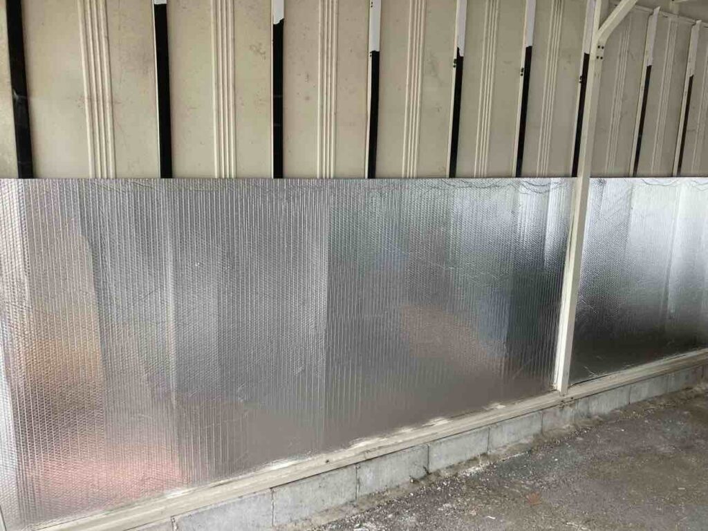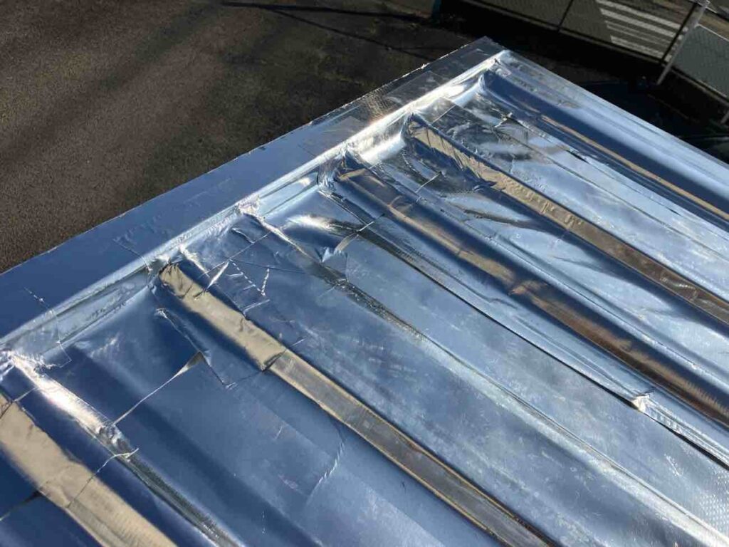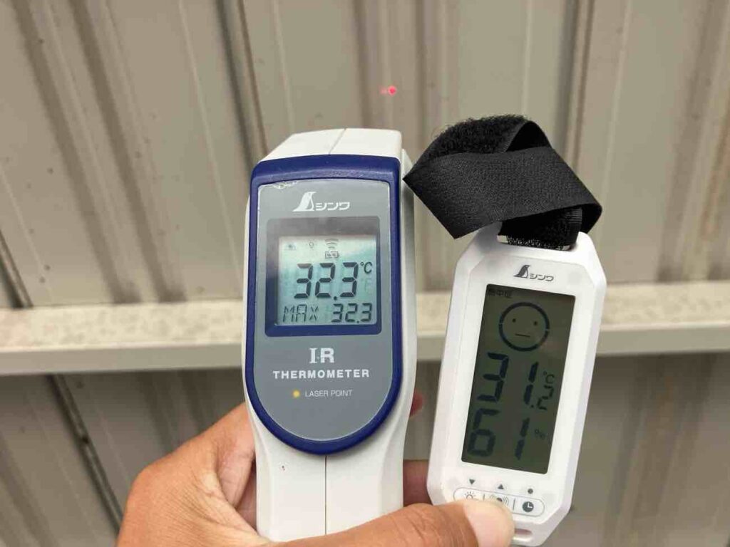 建物の用途:保管倉庫 施工現場:愛知県豊橋市 施工商品:サーモバリアスカイ・サーモバリアS 施工時期:2025年8月 施工期間:2日 【導入理由】 自社倉庫に実験用として施工しました。 ▼サーモバリアスカイ工法 〈倉庫屋根〉 施工前の折板裏面の温度は42℃でしたが施工後は32℃となり暑さを感じなくなりました。天井からのムンムンとした暑さがなくなりました。 ▼サーモバリアS 〈内壁〉 内壁も同時施工しました。 内壁も施工前は40℃以上でしたが施工後は34.5℃となりかなりの効果があります。 |