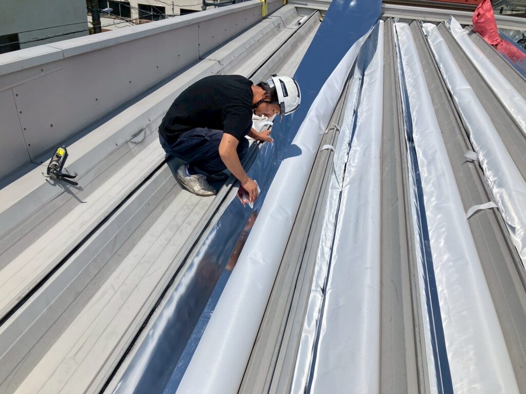 建物の用途:物流倉庫 施工現場:東京都葛飾区 施工商品:サーモバリア スカイ工法 施工面積:424㎡ 施工期間:15日 【導入理由】 うちの倉庫は夏になるととにかく暑くて、作業しているスタッフからも「とにかく何とかしてほしい」という声が出ていました。鉄骨の建物で屋根も高く、日差しが強い日にはまるでサウナのような状態。扇風機を回したりスポットクーラーを使ったりもしてきましたが、どれも根本的な解決にはならず、現場の環境改善は長年の課題でした。 そんな中、屋根の内側に貼ることで輻射熱をカットする「サーモバリア」を知り、ウチノ板金さんに相談。施工方法や実際の効果などを詳しく説明していただき、「これなら現場の暑さも改善できるかもしれない」と思い、導入を決めました。 【お客様の感想】 サーモバリアを貼ってもらってから、倉庫内の暑さがかなり軽減されたと感じています。感覚的な話になりますが、体感温度で言えば5℃くらいは下がったんじゃないでしょうか。以前は屋根の下に立っているだけでジリジリとした熱が降ってくるような感じでしたが、それがかなり和らいでいます。 今まではエアコンや送風機を全開にしても効きが悪かったのですが、施工後は明らかに空調の効率が良くなりました。スタッフも「今日はそこまで暑くないですね」と話すようになり、作業に集中しやすくなったと思います。やっぱり環境が良くなると、現場の雰囲気も変わりますね。導入して本当に良かったと感じています。 |