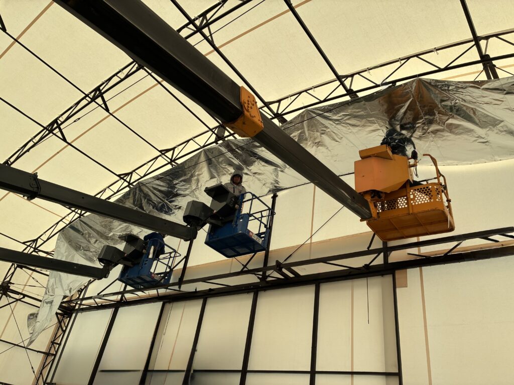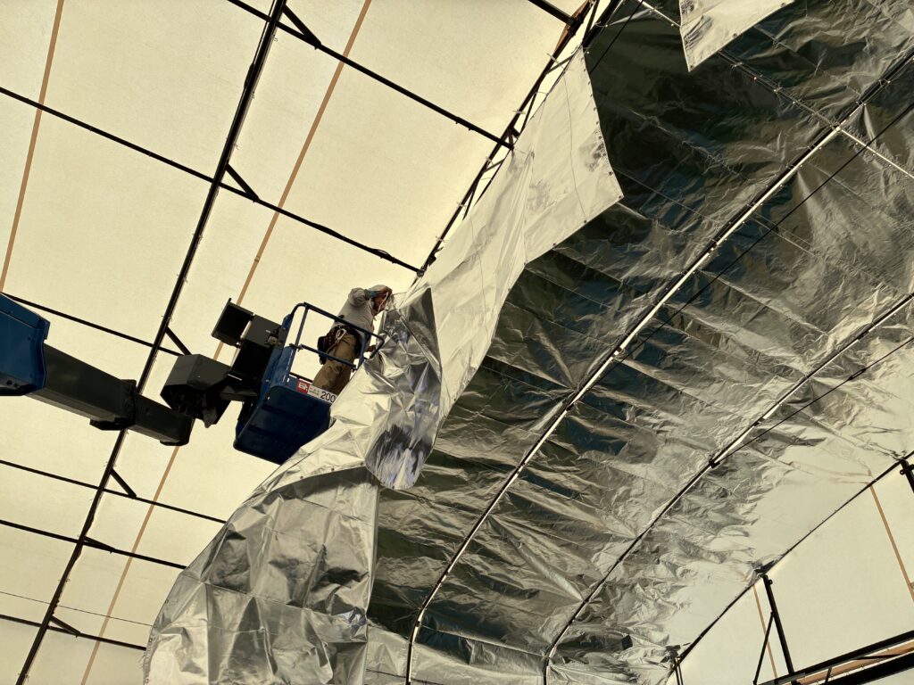 建物の用途:運送物用テント倉庫 施工現場:愛知県 施工商品:サーモバリアフィット 施工面積:495㎡ 施工時期:2025年8月 施工期間:2日間 |