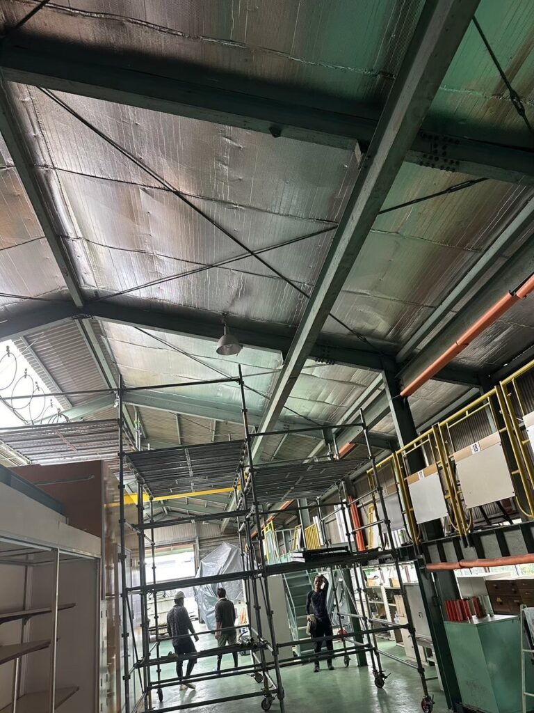 建物の用途:自動車内装品用金型製造 施工現場:愛知県碧南市 施工商品:サーモバリアS 施工面積:320m2 施工時期:2024年7月 施工期間:4日 【導入理由】 工場内の暑さで従業員の皆さんが大変そうで、何とか労働環境を改善したいと考えていました。 遮熱対策を調べる中でサナップさんのHPを見つけ、以前から存在は知っていましたが、お問い合わせはしていませんでした。 その後、偶然にもサナップの営業担当者が訪問してくださり、迅速な現場調査と見積もり対応に加え、体感キットで効果を実際に確認できたため、導入を決定いたしました 【お客様の声】 「屋根の採光部分からの熱侵入が課題でしたが、そこにも遮熱シートを施工していただきました。 室内が暗くなる心配もありましたが、照明が遮熱シートに反射するため、施工後も明るさに問題はありませんでした。 夏の施工時に2時間おきに温度測定を行ったところ、平均して5℃の温度低下を確認できました。体感的にも非常に楽になり、エアコンの使用も最小限で済むようになりました。 |