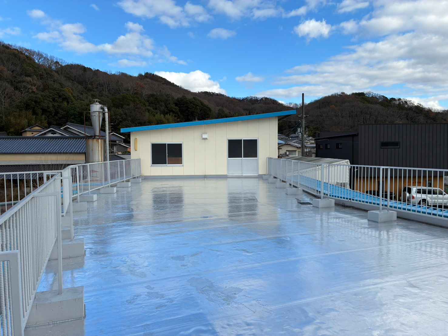 建物の用途:ショールーム 施工現場:岐阜県岐阜市 施工商品:サーモバリアスカイ工法 施工面積:1549㎡ 施工時期:2025年10月 施工期間:2週間 【導入理由】 2階の事務所が暑く、空調を使用しても効きが悪い。何か対策はないかと困っておられました。 屋根からの熱が主な原因だとわかり、断熱材、遮熱塗料、遮熱シート(サーモバリア)で比較。体験キットで遮熱シートの効果を実感されサーモバリアを採用することとなりました。 金属の折板屋根でしたので、屋根上に貼るサーモバリアのスカイ工法をご提案しました。作業が屋根上ですので、業務に支障をきたすことなく施工が完了いたしました。 【お客様の感想】 施工完了確認時にお施主様と一緒に屋根上でご確認いただきました。その際、シート面とそれ以外の熱さの差を肌で感じていただき、「これは効果が期待できるね。来年の夏が楽しみです。」との嬉しいお言葉をいただきました。 |