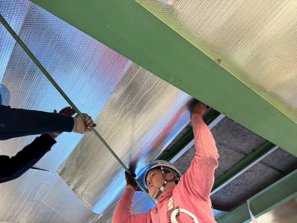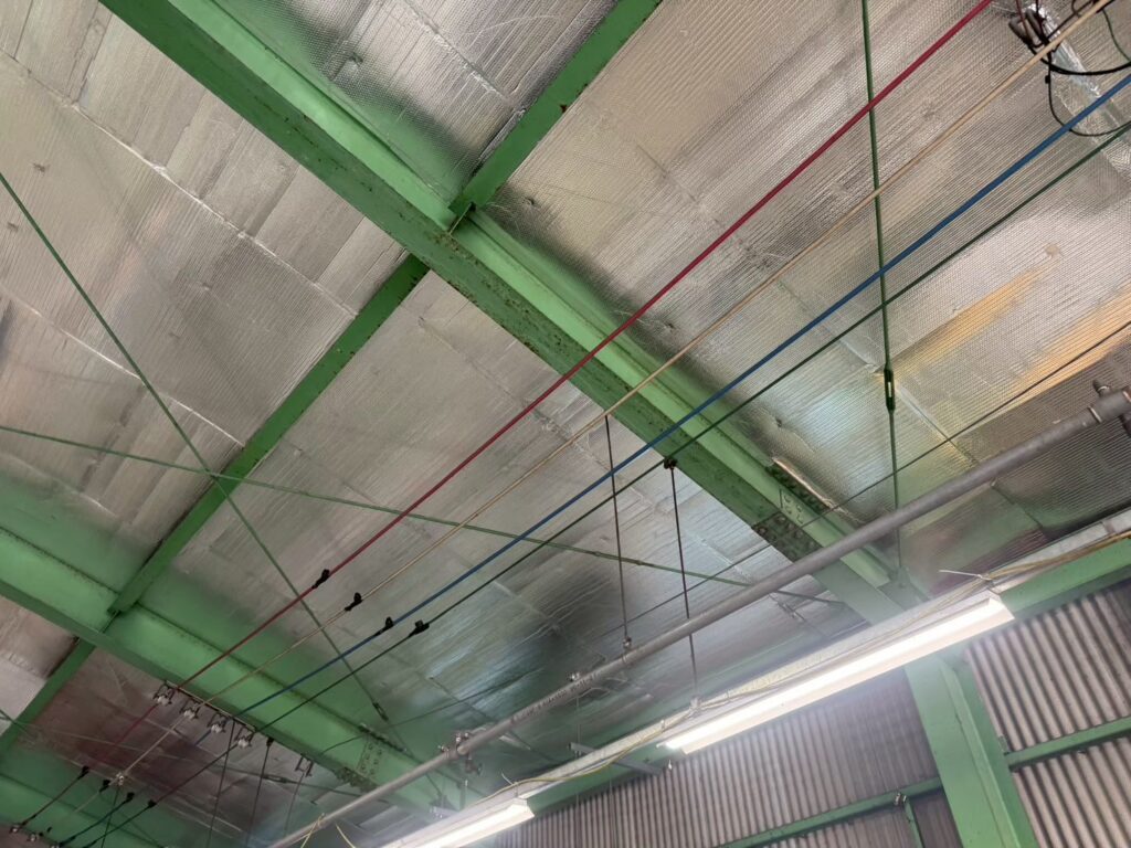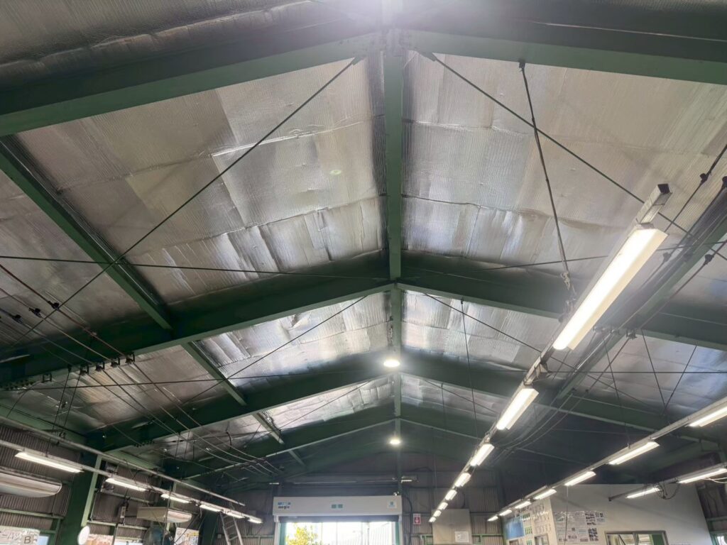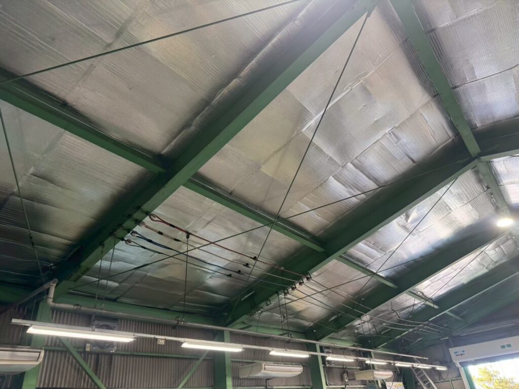 建物の用途:商品保管倉庫 施工現場:埼玉県吉川市 施工商品:サーモバリアS 施工面積:380㎡ 施工時期:2025年11月 施工期間:14日間 【導入理由】 真夏の太陽光による輻射熱の影響で工場内の温度が上昇し、作業環境の改善が課題となっていました。特に中二階など空調が効きにくい箇所では暑さが顕著で、温度測定も実施されていました。また、屋根改修やカバー工事は大掛かりになるため、より効率的な対策が求められていました。 こうした状況を踏まえ、熱中症対策および遮熱対策として、来期の夏に向けて屋根下工法サーモバリアの導入をご決定いただきました。 【お客様の感想】 昨年の温度測定データがあるため、施工後の変化を数値として比較できる点に期待しています。 実際の作業環境がどの程度改善されるかも重要なポイントであり、来年の夏に向けてその効果を確認できることを楽しみにしています。 施工も丁寧に対応いただき安心してお任せできました。 |