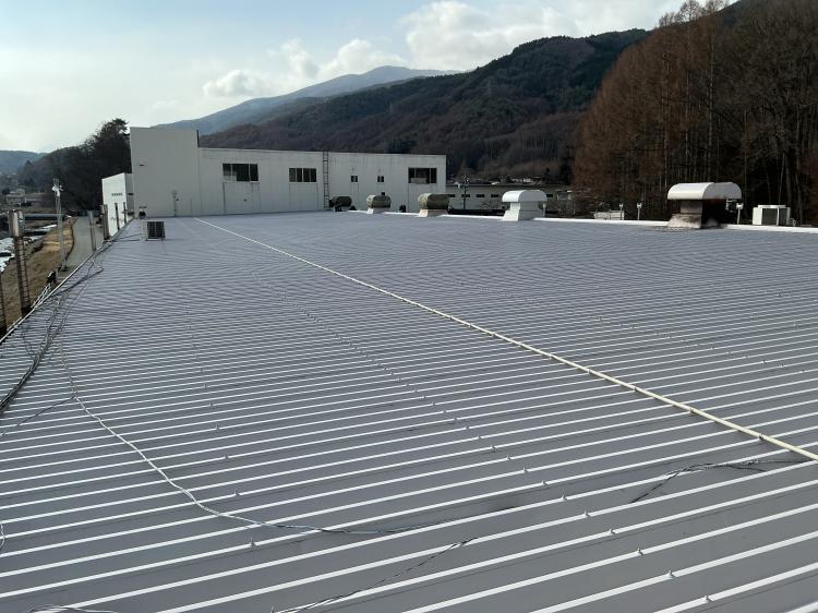 ソーラーパネル導入前の先制対策。検討に検討を重ねた結果4,000㎡を超える大規模工場でスカイ工法