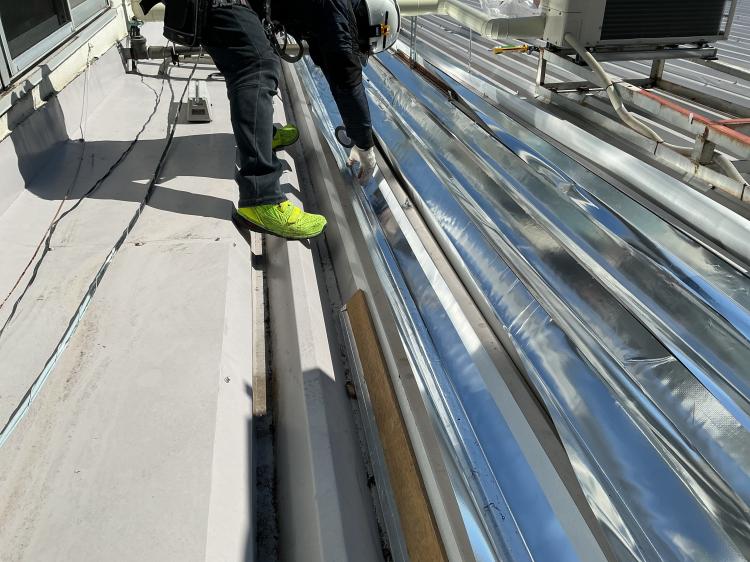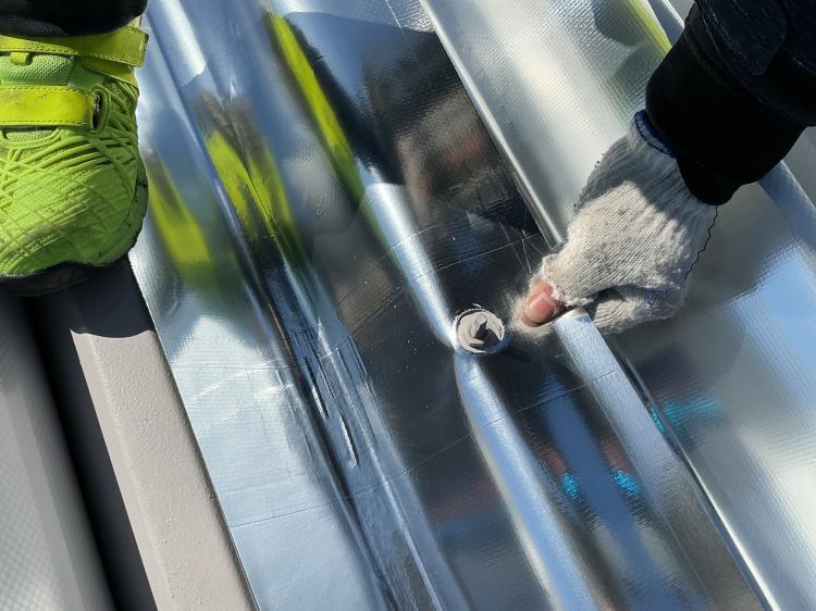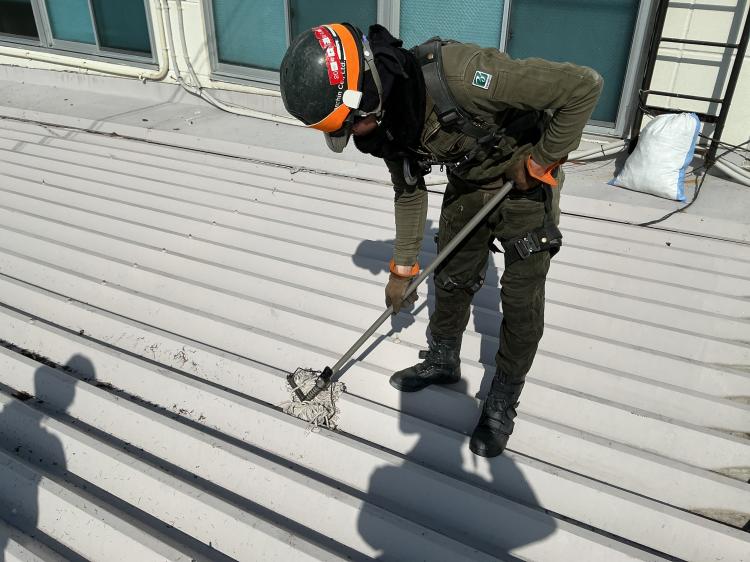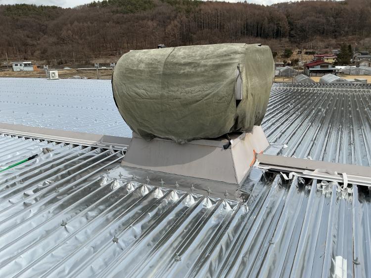 ソーラーパネルを予定されているそうでしたが、輻射熱対策と屋根の長寿命化を図るため先にスカイ工法をご採用いただきました。