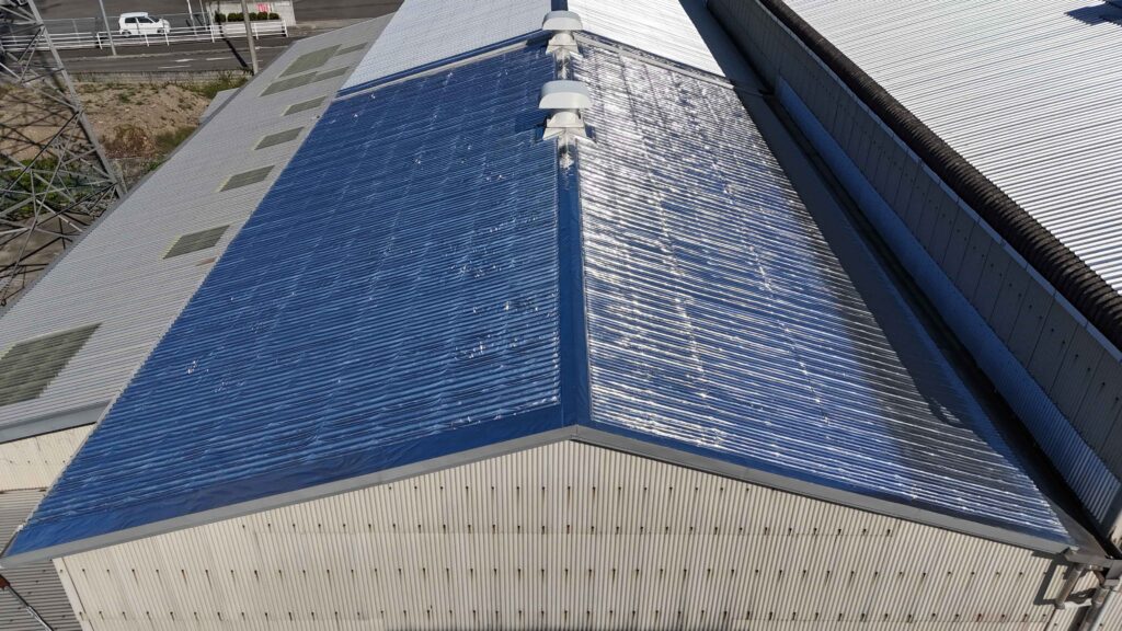 建物の用途:電気部品の製作、機械加工 施工現場:愛媛県新居浜市 施工商品:サーモバリア スカイ工法 施工面積:476m² 施工時期:2025年9月1日 施工期間:30日間 【導入理由】 他の会社に相談して話がまとまらず、香川県高松市での省エネイベントでスカイ工法を知っていただく。 【お客様の感想】 まだ施工して初めての夏を迎えてないためはっきりとした効果は分からないが、効果を実感できるのを楽しみにしています。 【施工情報】 ・スレートの上に折板屋根を敷いた屋根にスカイ工法を実施(全体の一部のみ)。 ・他のスレートのままだった屋根には、今回カバー工法を実施しました |