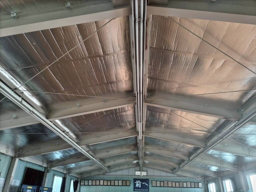 高等学校卓球部|生徒の安全面と快適な練習環境の確保 既存の断熱材では不十分だった折板屋根の輻射熱。