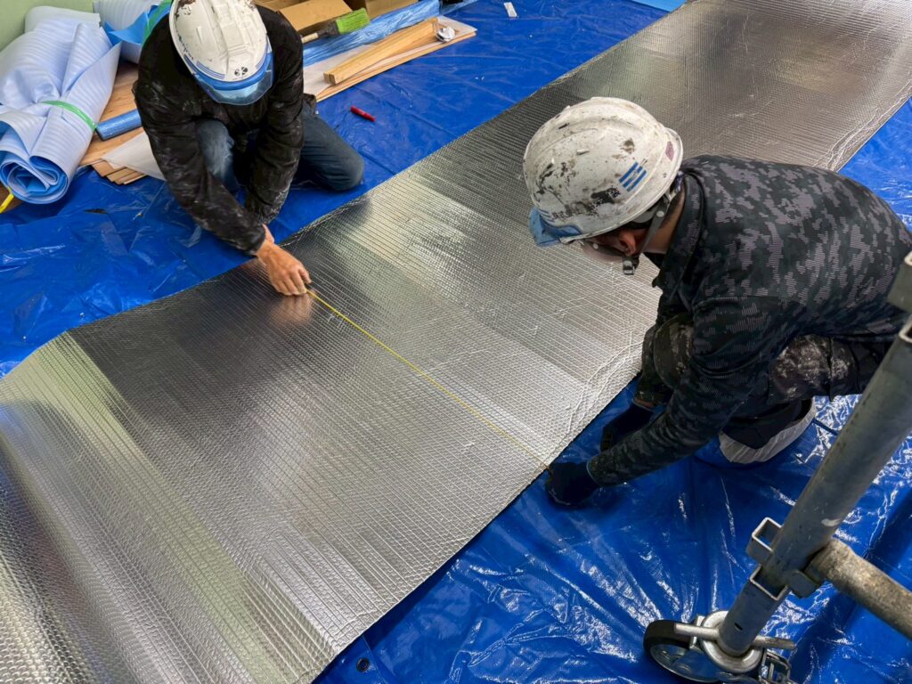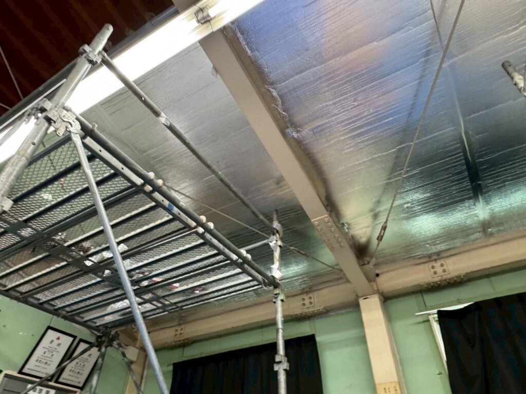 建物の用途:卓球部 室内練習場 施工現場:埼玉県蕨市 施工商品:サーモバリアS 折板屋根下工法 施工面積:252㎡ 施工時期:2026年3月 施工期間:13日間 【導入理由】 本施設は卓球部の室内練習場として使用されており、折板屋根の影響により夏場は屋根からの輻射熱が室内へ伝わりやすく、非常に高温となる環境でした。屋根裏には断熱材が施工されていましたが、十分な効果が感じられず、部活動における練習環境の改善が課題となっていました。 特に近年は熱中症対策の重要性が高まっていることから、生徒の安全面および快適な練習環境の確保を目的として、屋根下から施工可能な遮熱対策としてサーモバリアの導入を決定しました。 【お客様の感想】 夏場は非常に暑く、練習試合で他校の生徒が来校した際には、室内の暑さにより本来の力を発揮しきれず、結果として慣れている自校の生徒が有利になるほどの環境でした。 今回の施工により、こうした状況が改善され、より良い練習環境になることを期待しています。 また、タイトなスケジュールにも関わらず丁寧に施工していただき、ありがとうございました。施工中も安全面や練習への配慮をしていただき、安心してお任せすることができました。 |